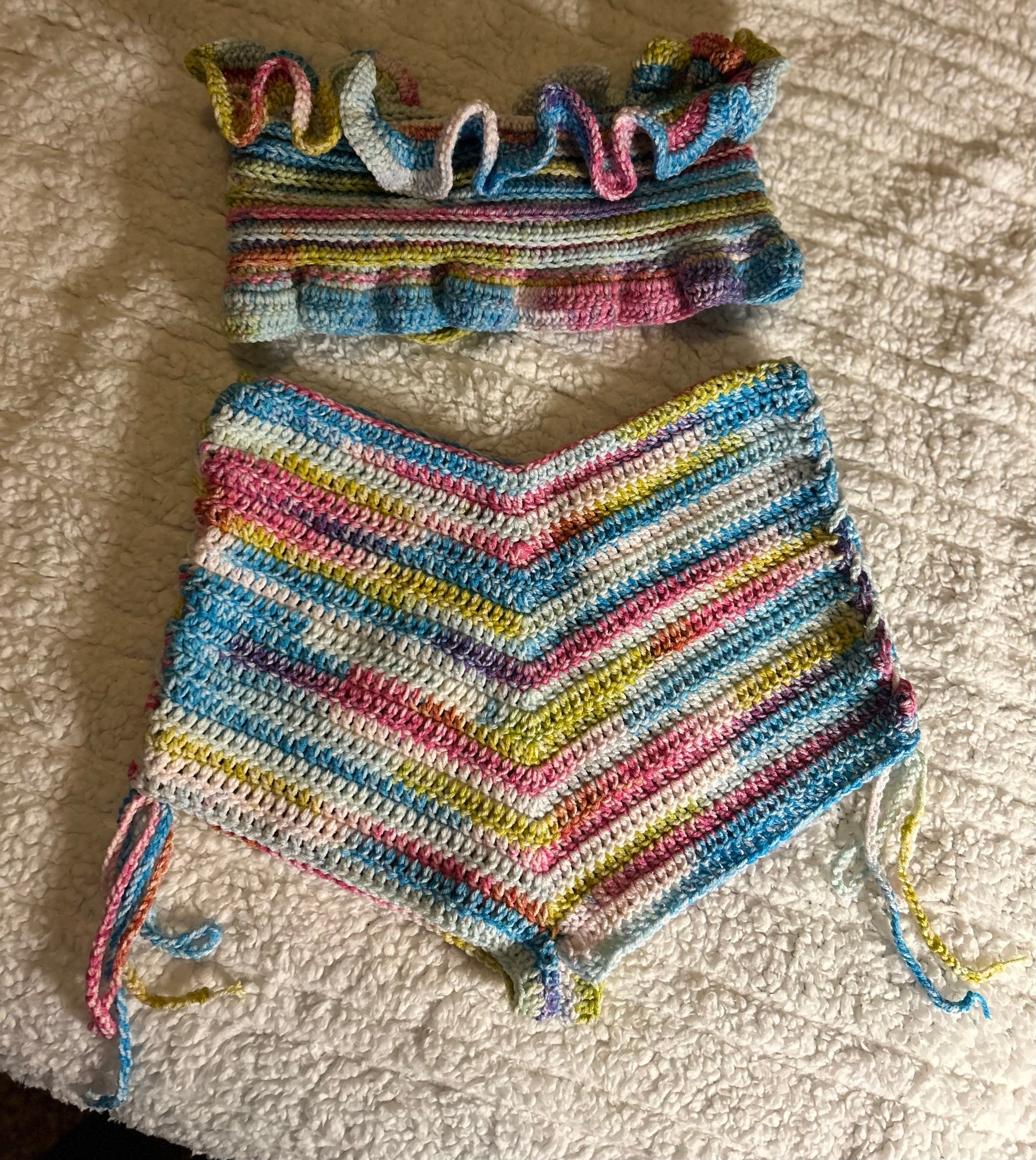 This is an item of clothing. It is crocheted with a lightweight, 100% acrylic yarn. Perfect for wearing while on vacation or to the beach! Made in the U.S. Size L.